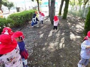 先日、隣にある小学校へ散歩に行きました。そこで色々な大きさや色のどんぐりを見つけ、とても嬉しそうな子ども達でした!