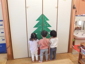 クラスに貼ってあるクリスマスツリーにみんなでシール貼りを行いました。
